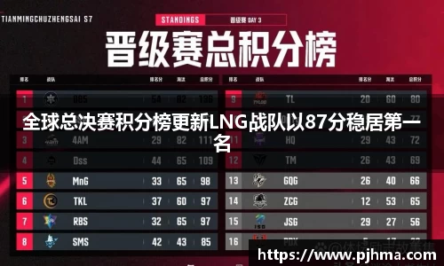 全球总决赛积分榜更新LNG战队以87分稳居第一名